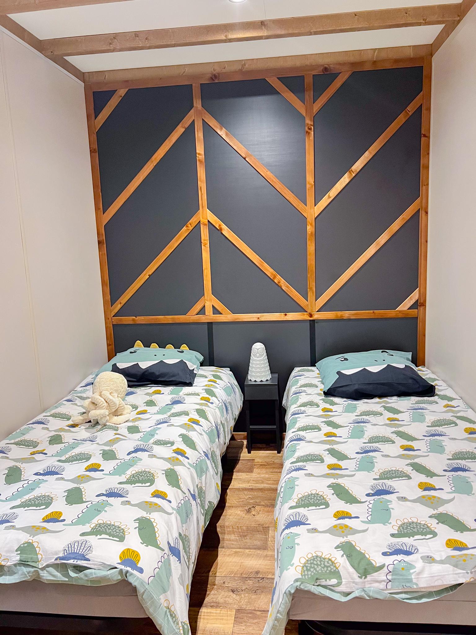 El segundo dormitorio cuenta con dos camas individuales (80 cm x 190 cm cada una) y una ducha estándar (80 cm x 80 cm).