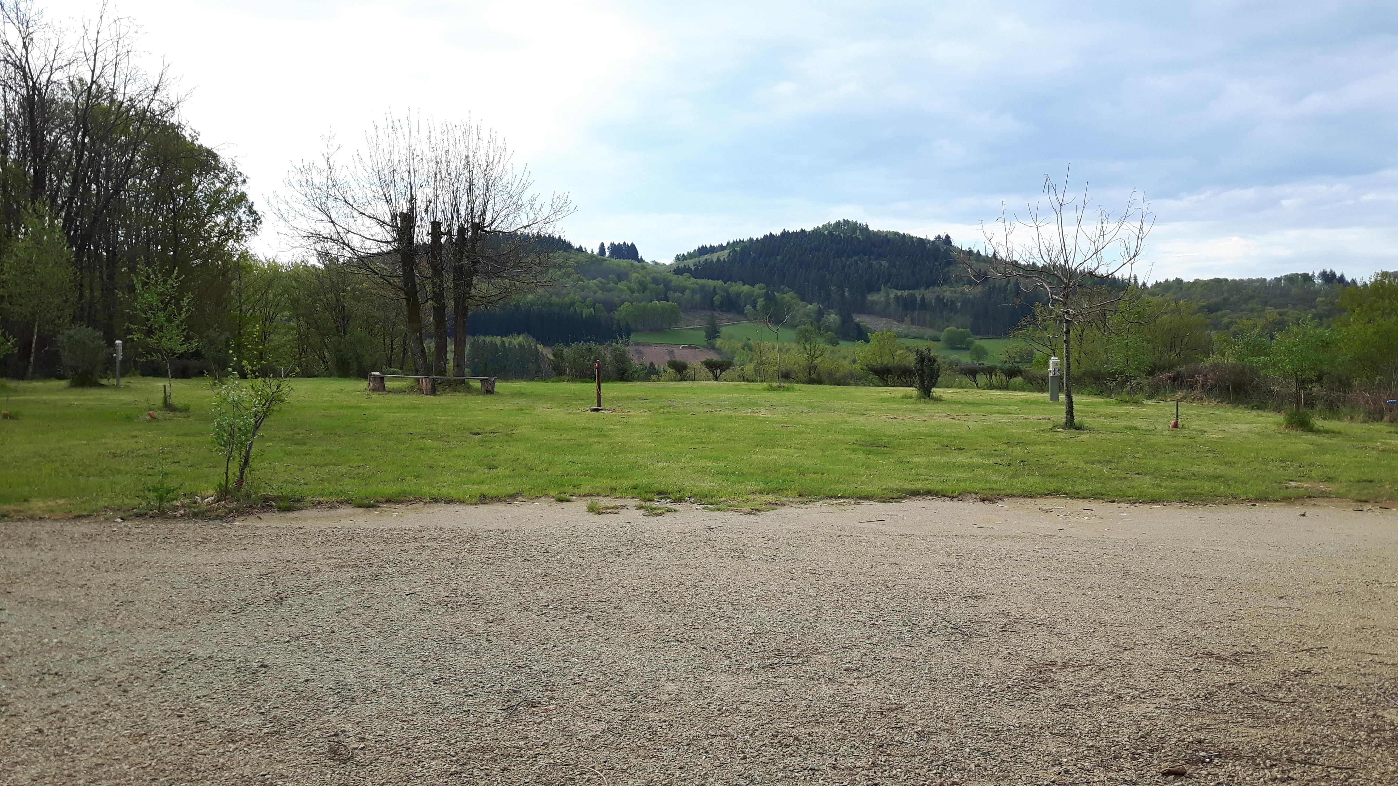 De camperplaatsen zijn met gras begroeid of gedeeltelijk met grind bedekt.